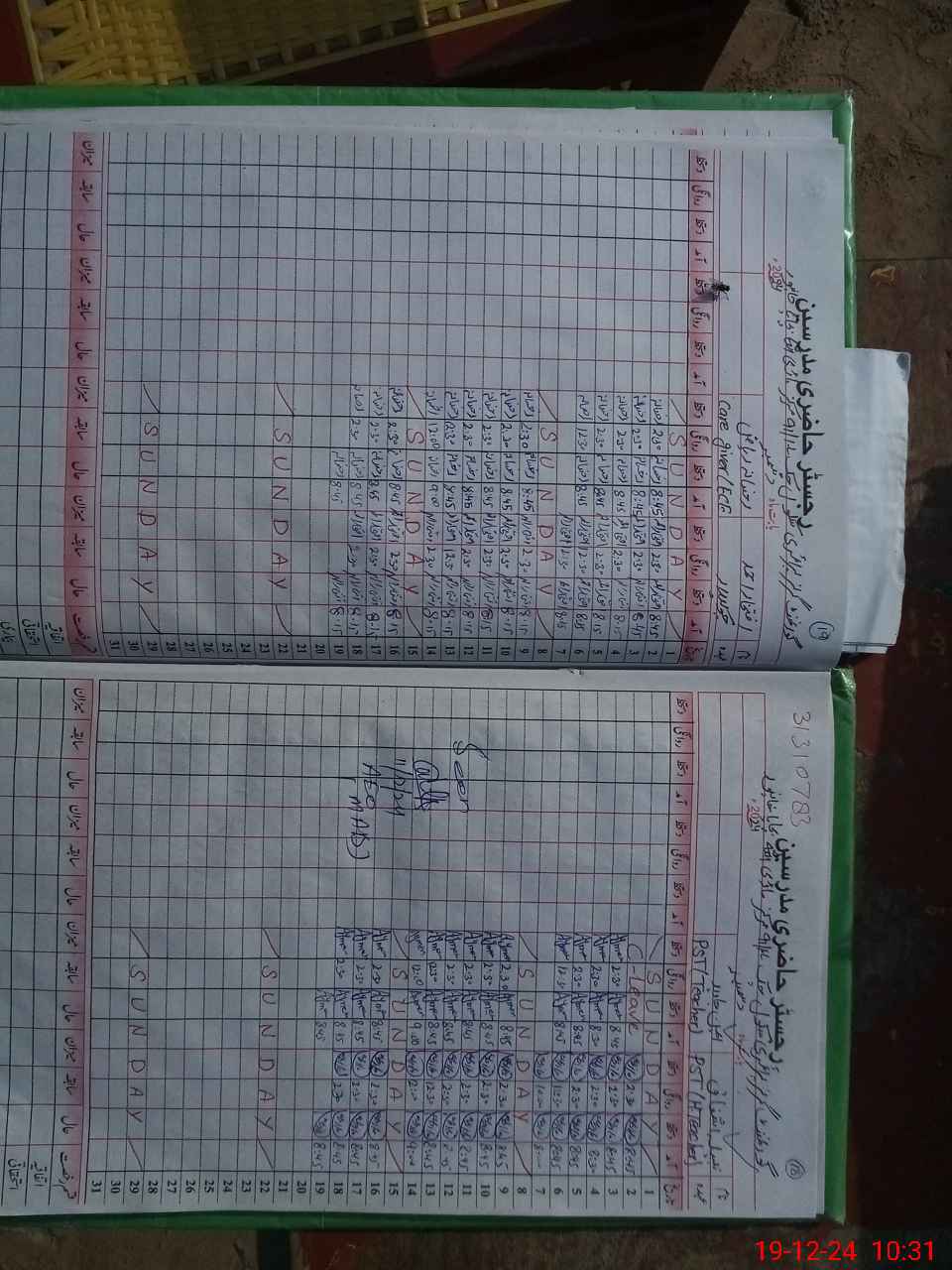 | CNIC | Full Name | Designation | R/C | Absence During Last Calender Month |