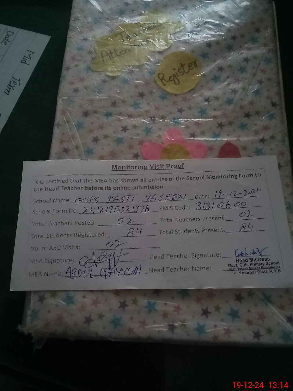 | EMIS Code: 31310600 | Name of School: GGPS BASTI YASEEN | |||