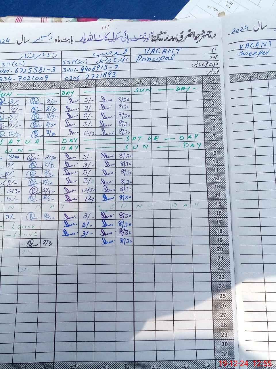 | Name: MU**** HA**** Designation: (School Headmaster's/Headmistress's) SST SCI Phone/Cell Number: 03**** |