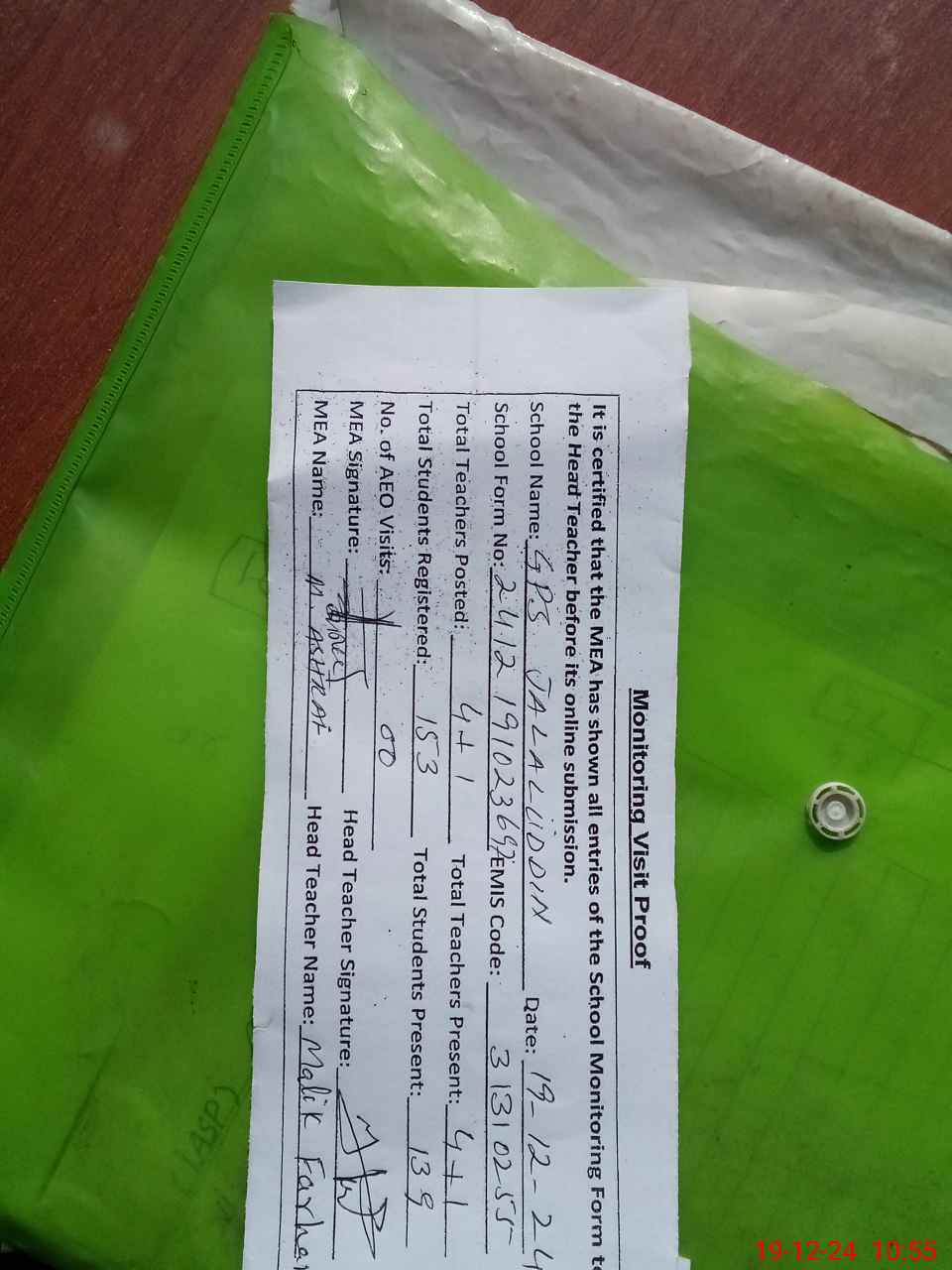 | EMIS Code: 31310255 | Name of School: GPS JALAL-UD-DIN | |||
