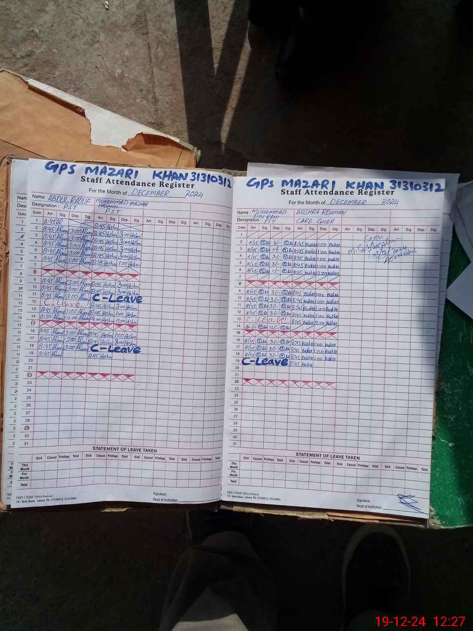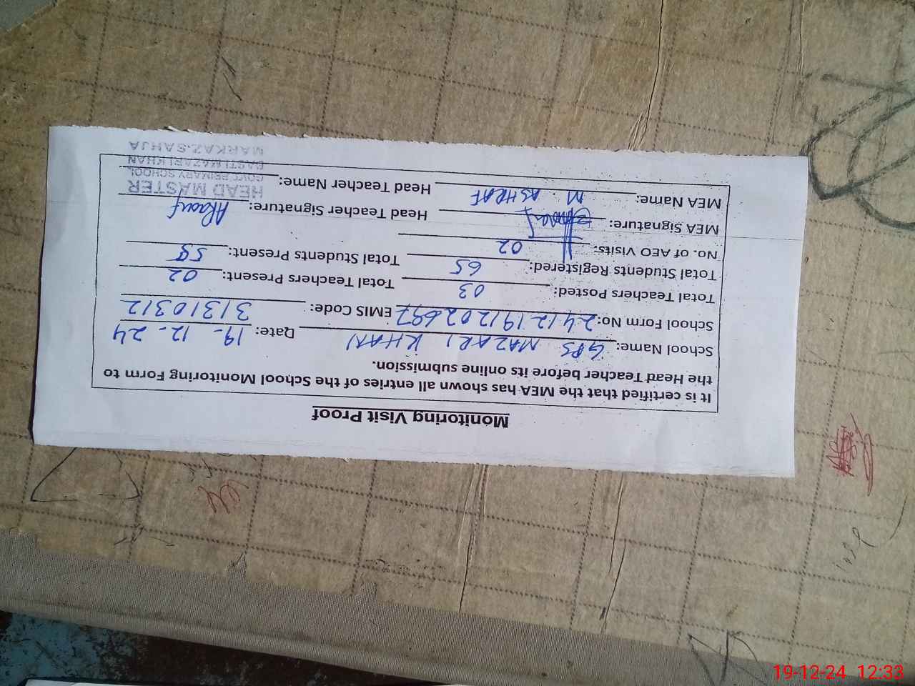 | EMIS Code: 31310312 | Name of School: GPS MAZARI KHAN | |||