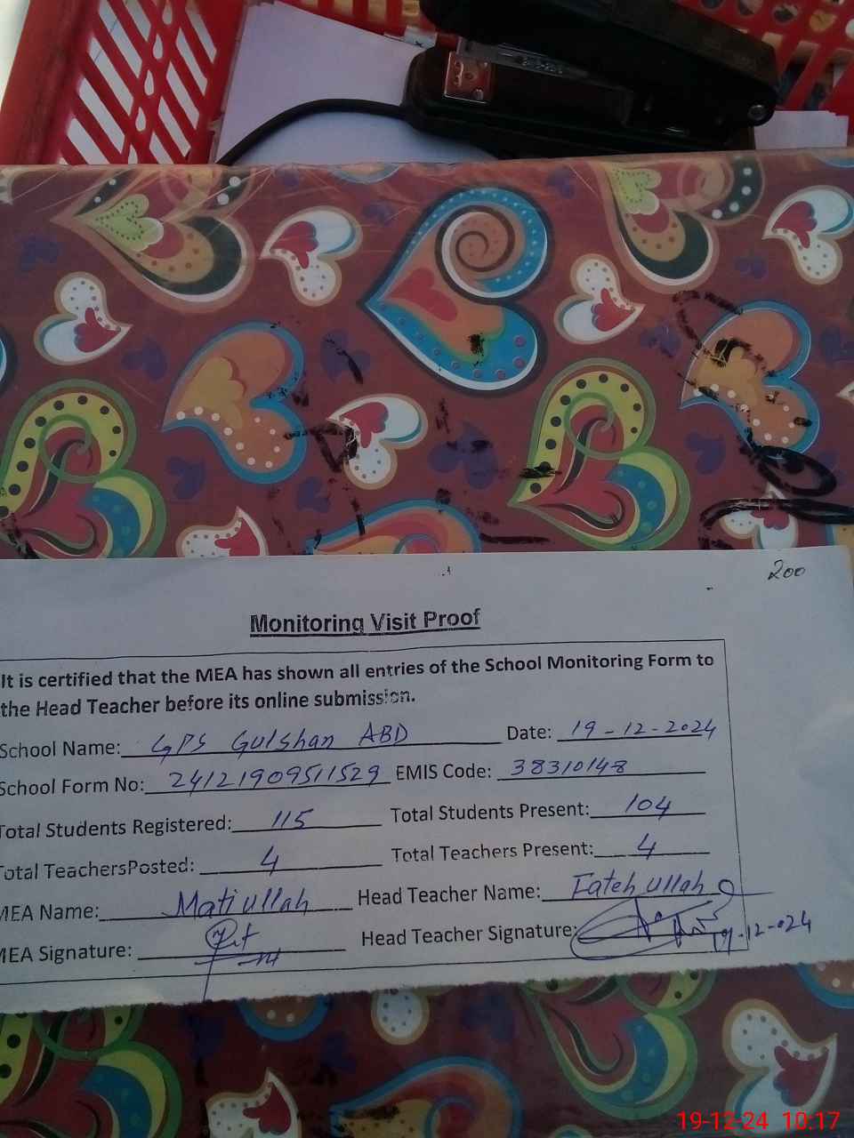 | EMIS Code: 38310148 | Name of School: GPS GULSHAN ABAD PO KAMAR MUSHANI | |||