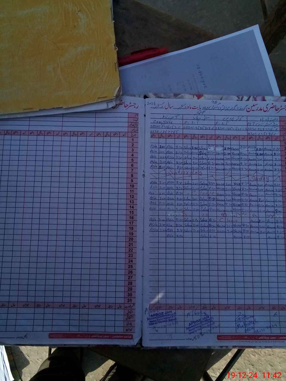 | CNIC | Full Name | Designation | R/C | Absence During Last Calender Month |