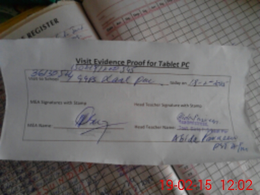 | Attendance Register | Head Teacher | MEA with School | Visit Proof |