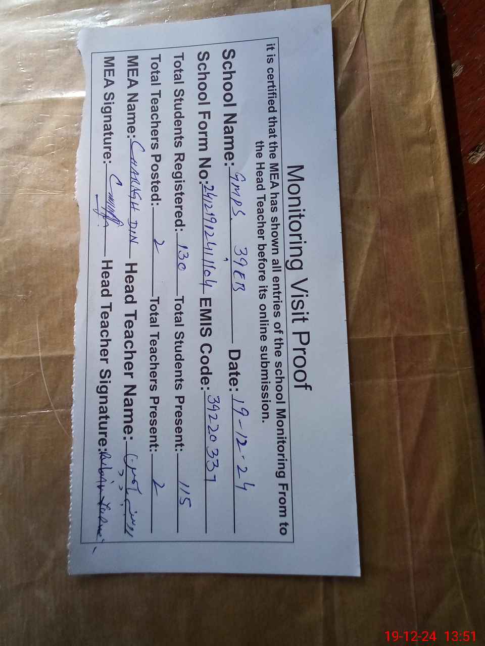 | EMIS Code: 39220337 | Name of School: GMPS CHAK NO 39 EB | |||