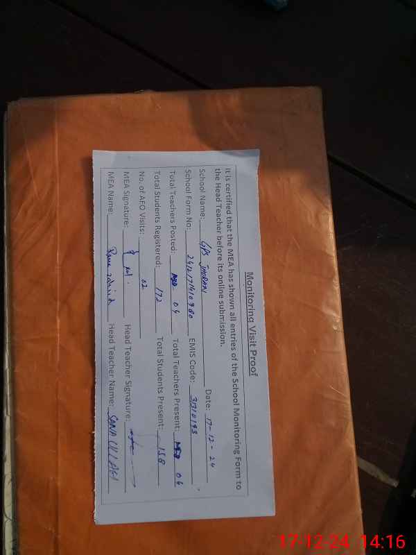 | Attendance Register | Head Teacher | MEA with School | Visit Proof |