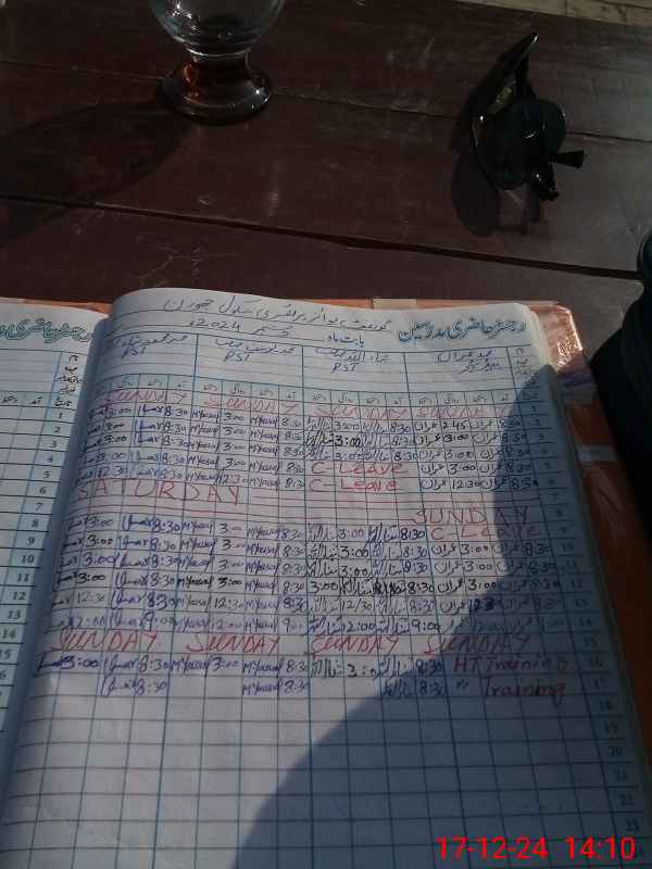 | CNIC | Full Name | Designation | R/C | Absence During Last Calender Month |
