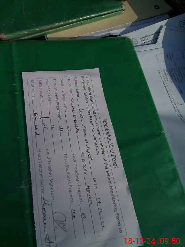 | Certified that this School was Inspected by the Undersigned MEA/DMO Today and the Information Stated Above is as Per Record. | |||||