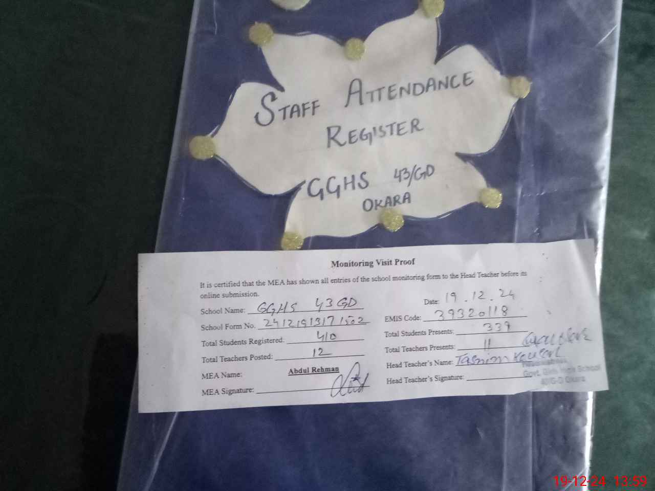 | EMIS Code: 39320118 | Name of School: GGHS CHAK NO. 43/G.D | |||