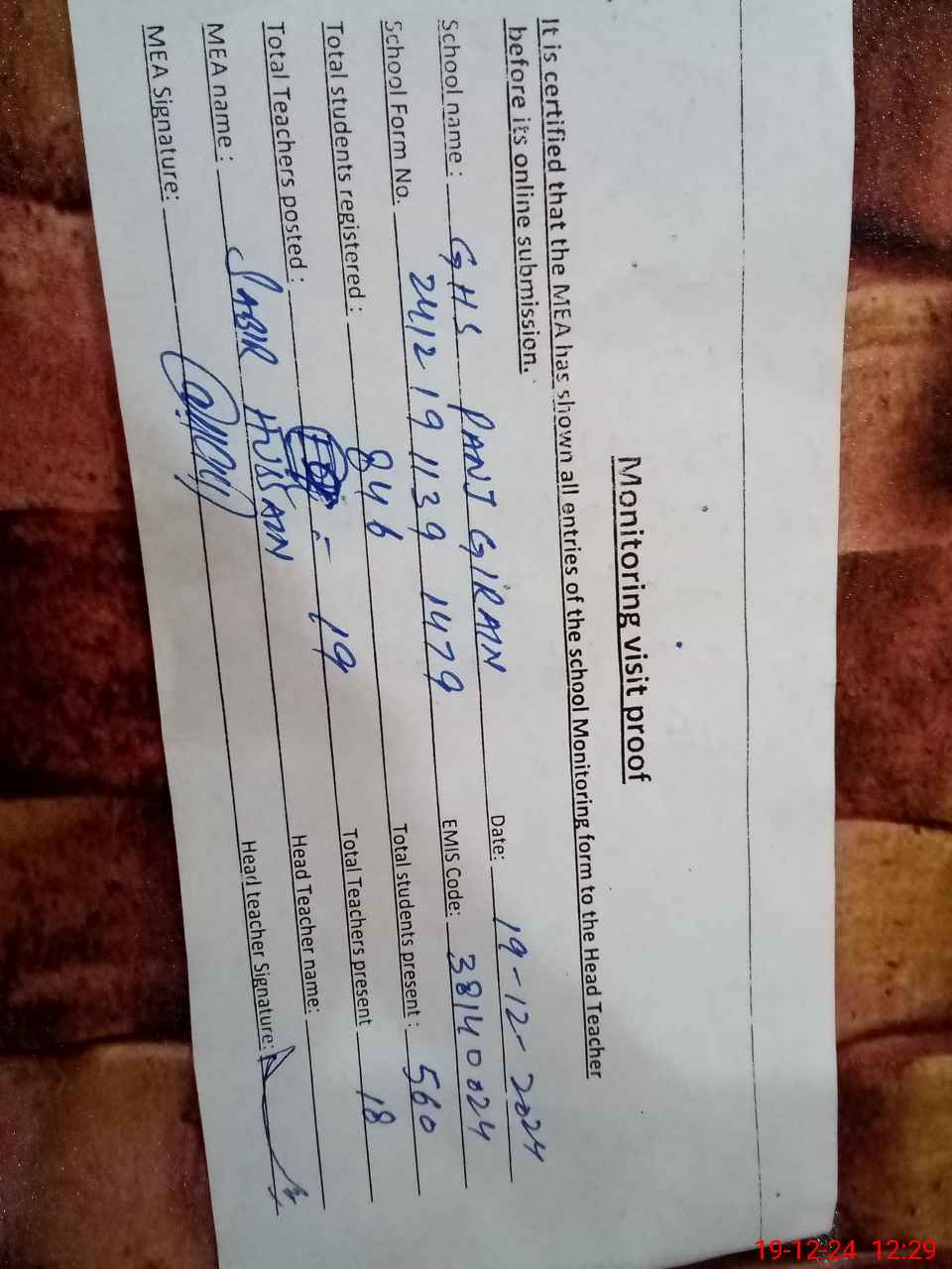 | EMIS Code: 38140024 | Name of School: GHS PANJ GIRAIN | |||