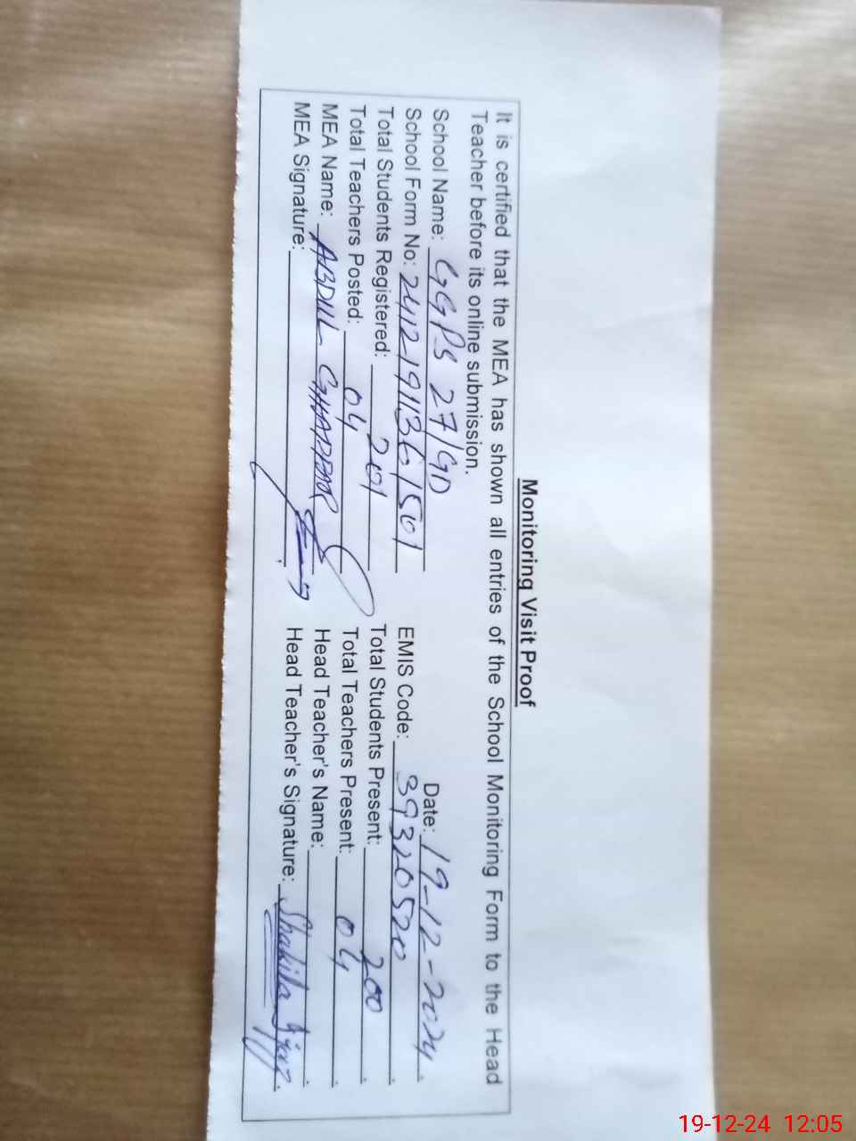| EMIS Code: 39320520 | Name of School: GGPS 27/G.D | |||