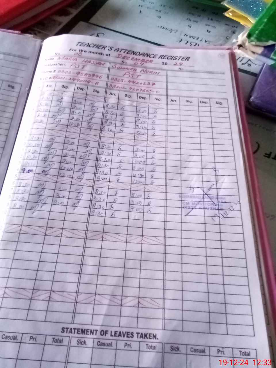 | Name: Ir**** Sh**** Designation: (School Headmaster's/Headmistress's) PST Phone/Cell Number: 03**** |