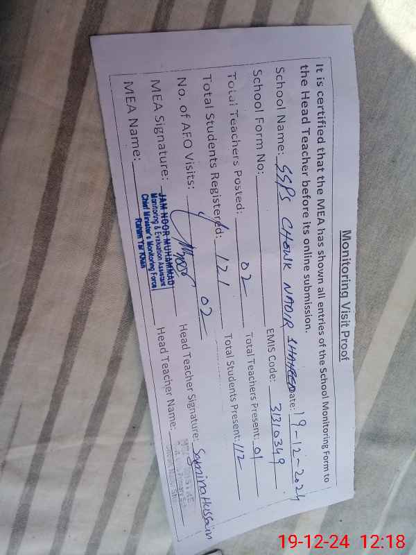 | EMIS Code: 31310349 | Name of School: GGPS CHOWK NADIR SHAHEED (After Noon) | |||