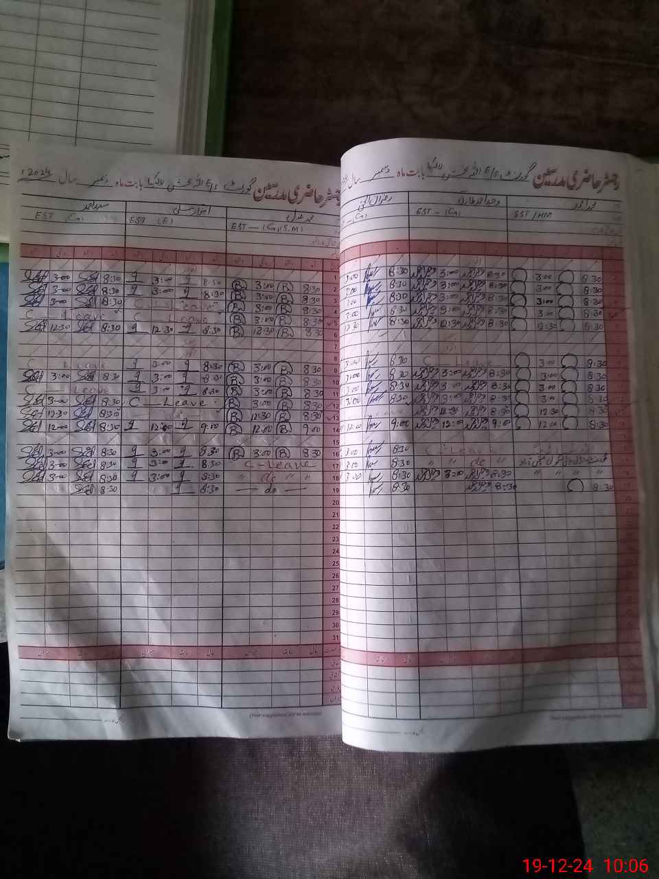 | CNIC | Full Name | Designation | R/C | Absence During Last Calender Month |