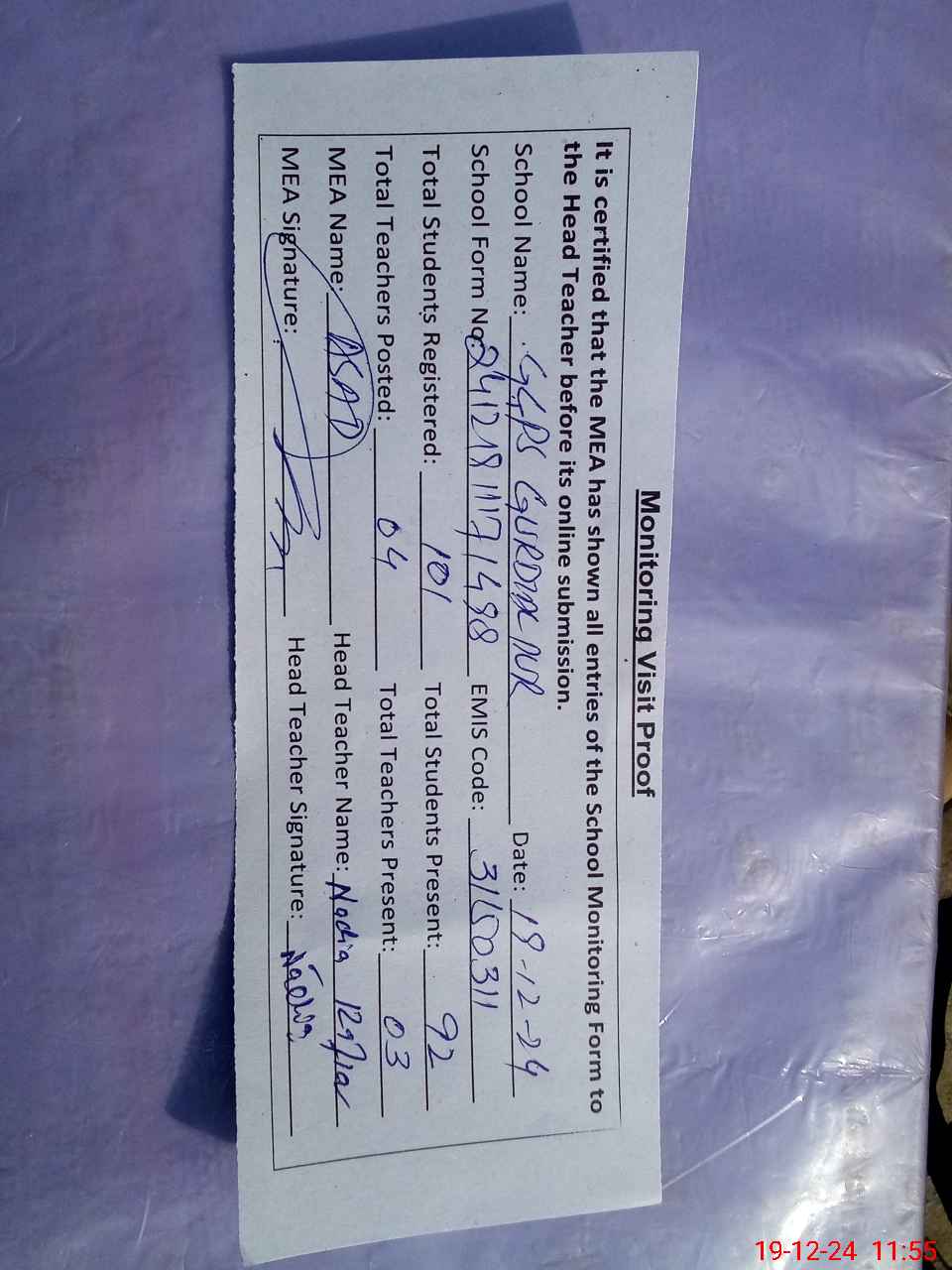 | EMIS Code: 31150311 | Name of School: GGPS GURDIAL PUR | |||