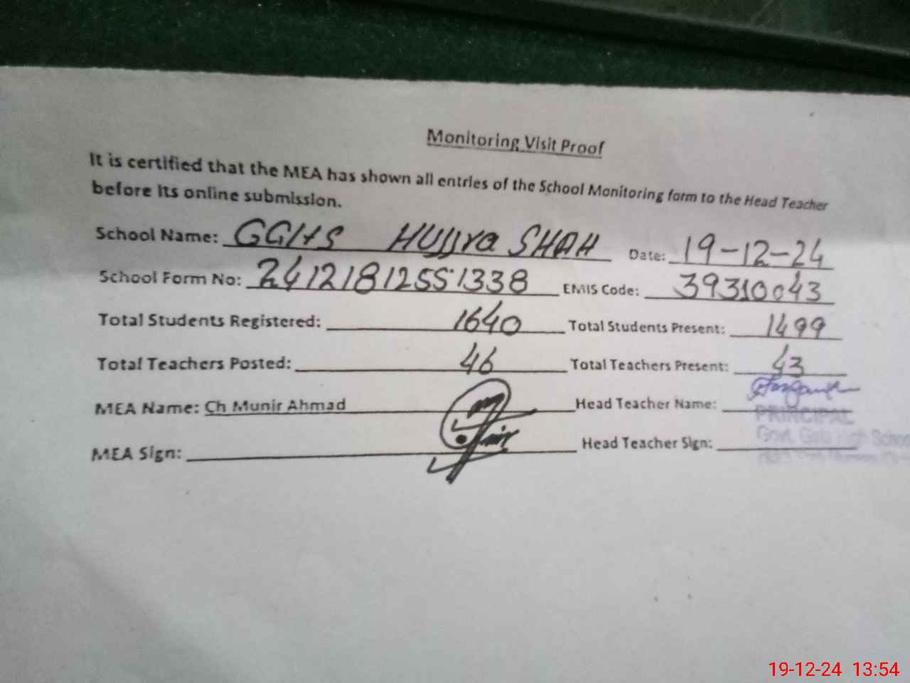 | EMIS Code: 39310043 | Name of School: GGHS HUJRA SHAH MUQEEM | |||