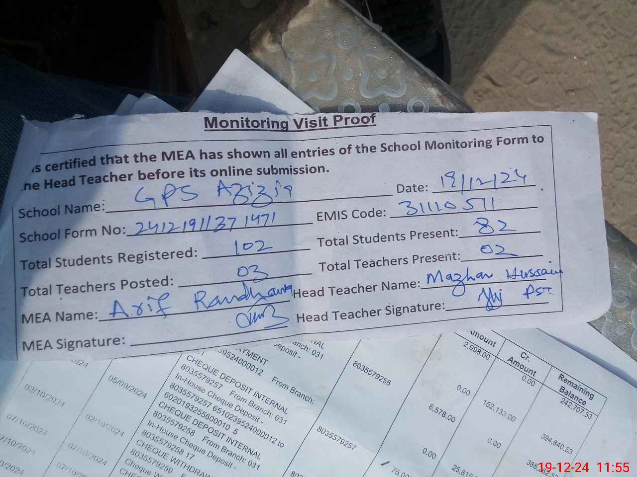 | EMIS Code: 31110511 | Name of School: GPS AZIZIA | |||