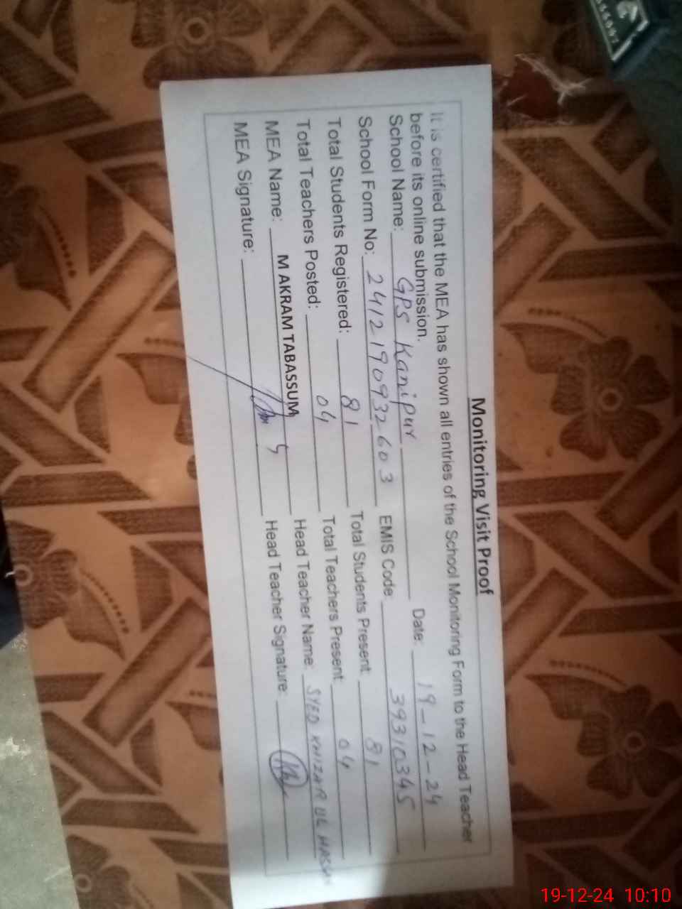 | EMIS Code: 39310345 | Name of School: GPS KANI PUR | |||
