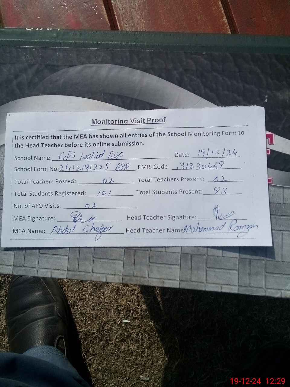 | EMIS Code: 31330469 | Name of School: GPS WAHID BUX | |||