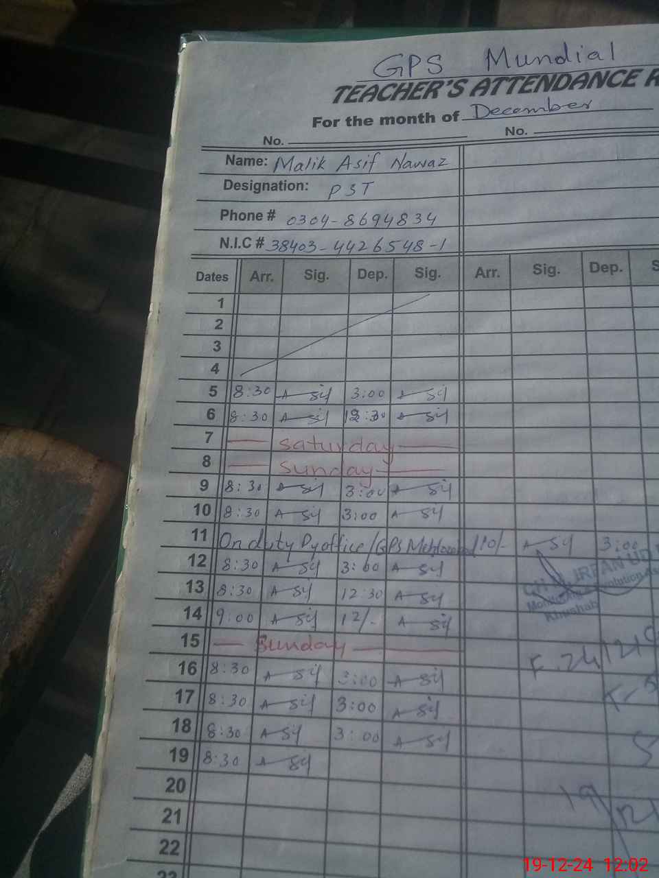 | Name: MU**** IS**** Designation: (School Headmaster's/Headmistress's) PST Phone/Cell Number: 03**** |