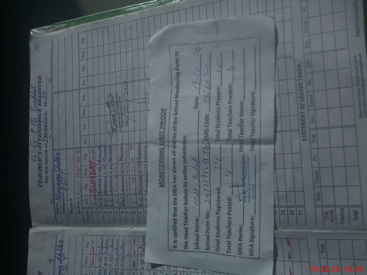 | EMIS Code: 38240702 | Name of School: GGPS MOHALLA SADDAL | |||