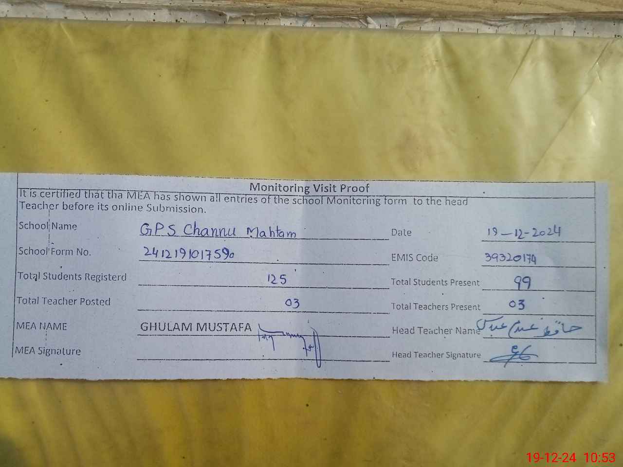 | EMIS Code: 39320174 | Name of School: GPS CHANU MAHTAM | |||