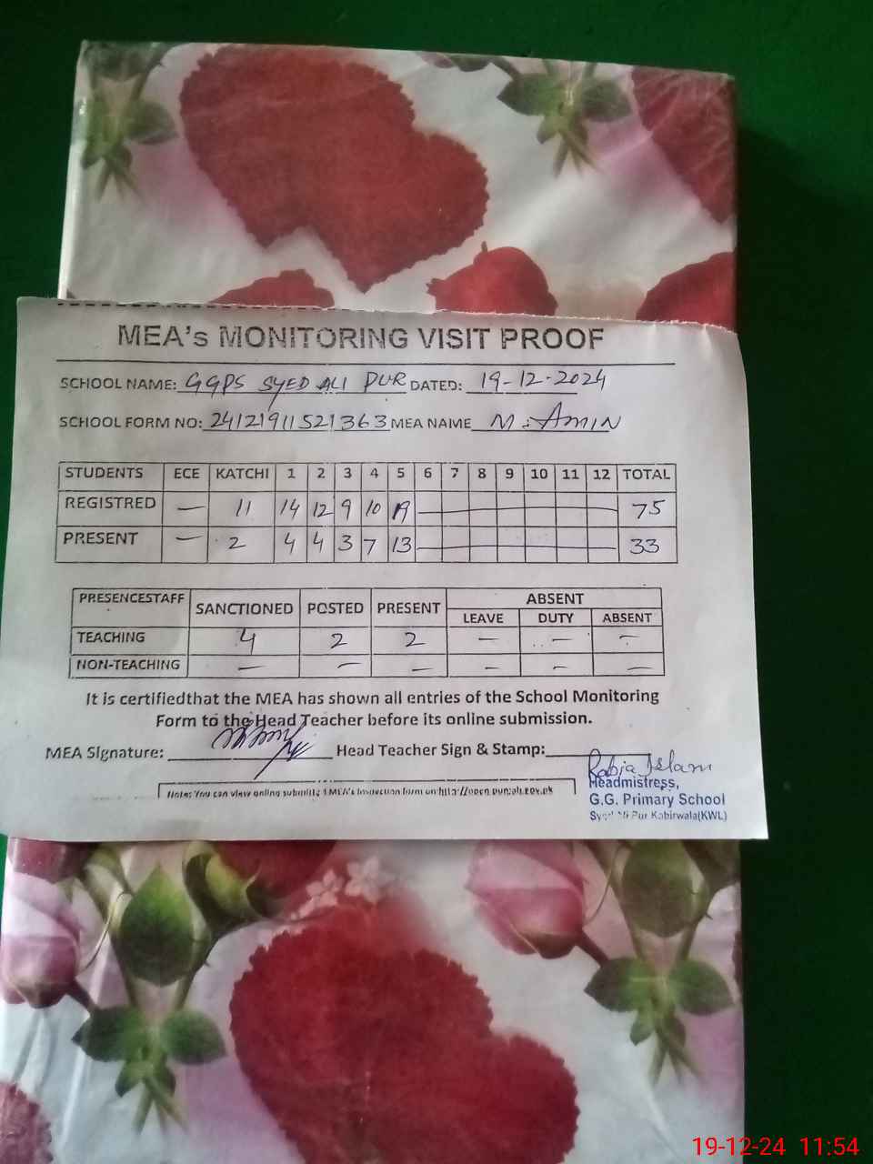 | EMIS Code: 36410347 | Name of School: GGPS SYED ALI PUR, P/O 5-KASSI, KABIRWALA | |||