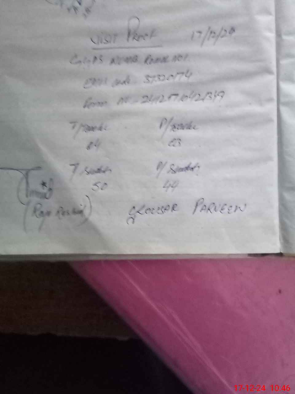 | Name: Ko**** Pe**** Designation: (School Headmaster's/Headmistress's) PST Phone/Cell Number: 03**** |