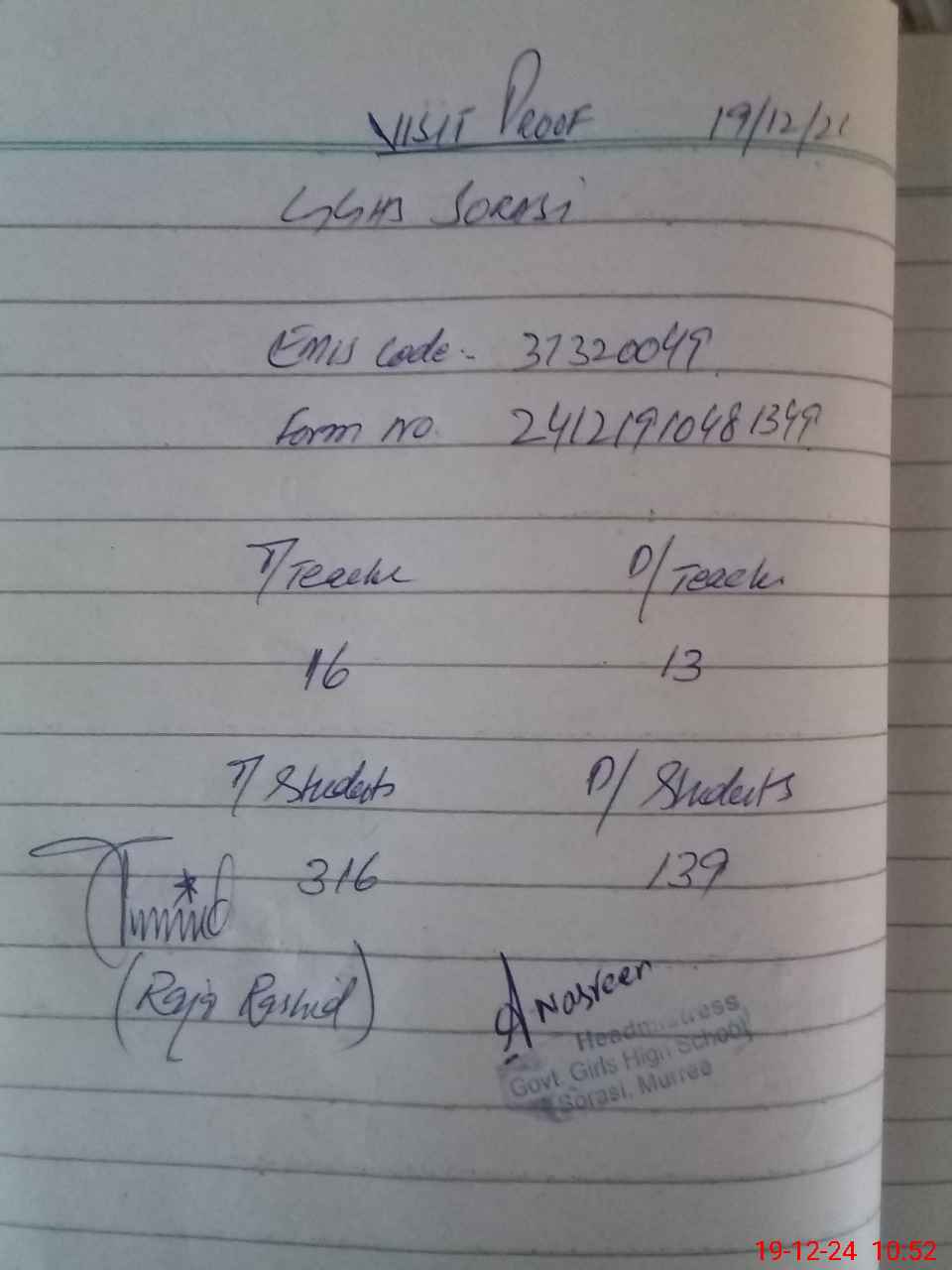 | EMIS Code: 37320049 | Name of School: GGHS SORASI | |||
