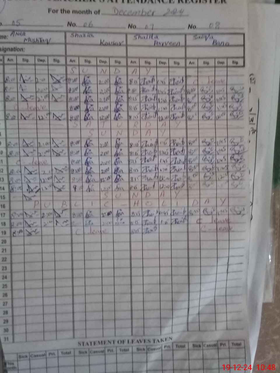 | 61**** | Sa**** Ba**** | PST | Regular | 0 | 0 | 0 | 0 | 0 | 0 | 0 | 0 | 0 | Casual |