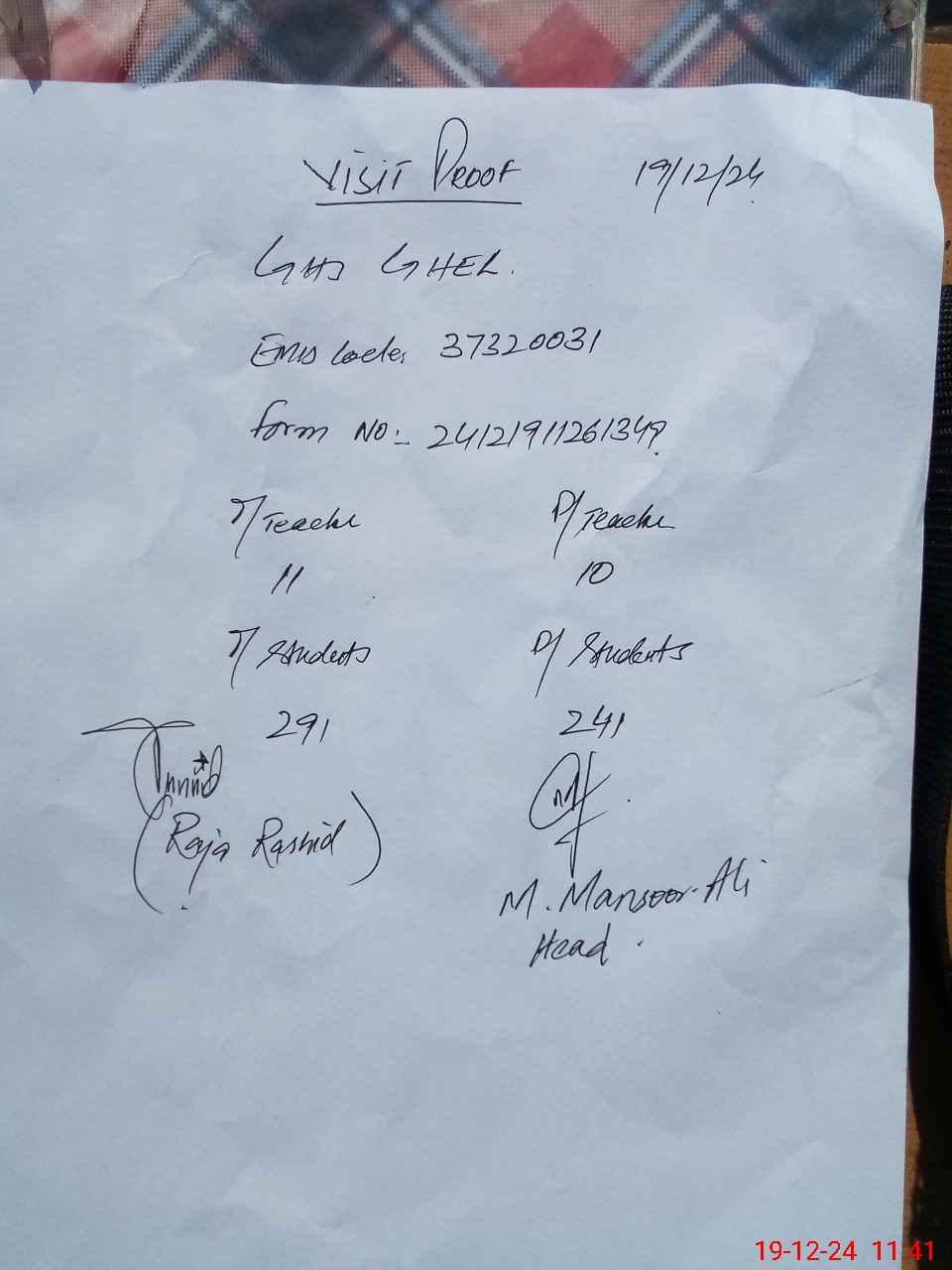 | EMIS Code: 37320031 | Name of School: GHS GEHL | |||
