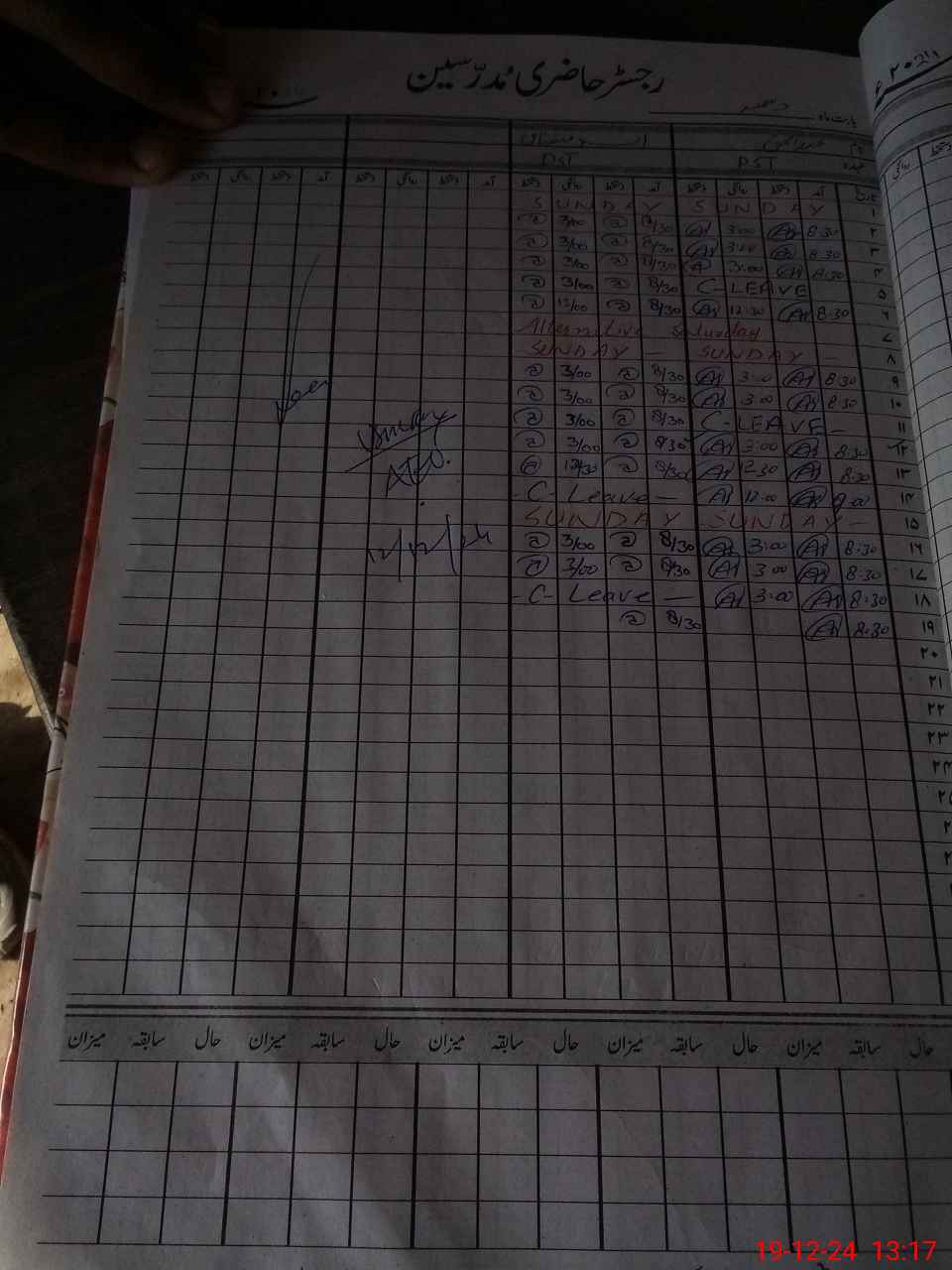 | CNIC | Full Name | Designation | R/C | Absence During Last Calender Month |