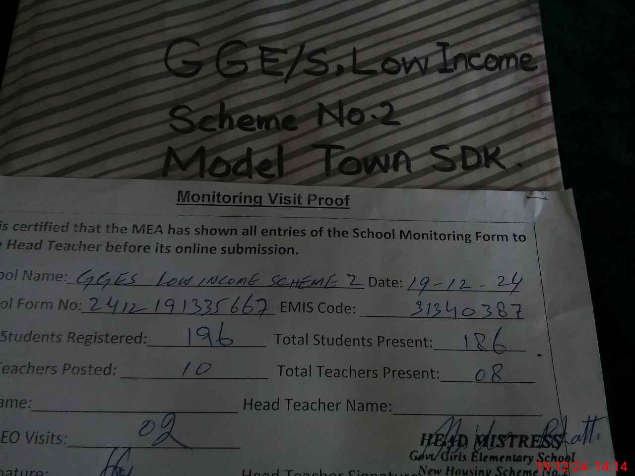 | EMIS Code: 31340387 | Name of School: GGES LOW INCOME SCHEME NO.2 MODEL TOWN | |||