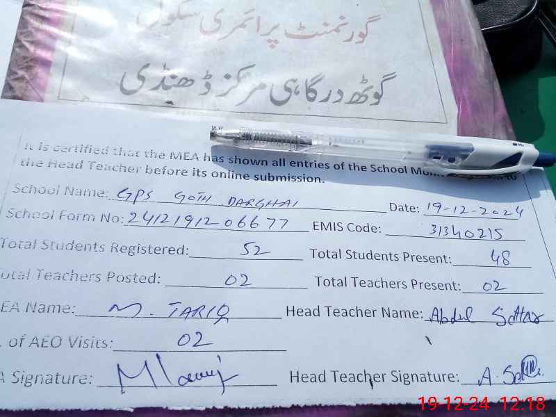| EMIS Code: 31340215 | Name of School: GPS GOTH DARGAHI | |||