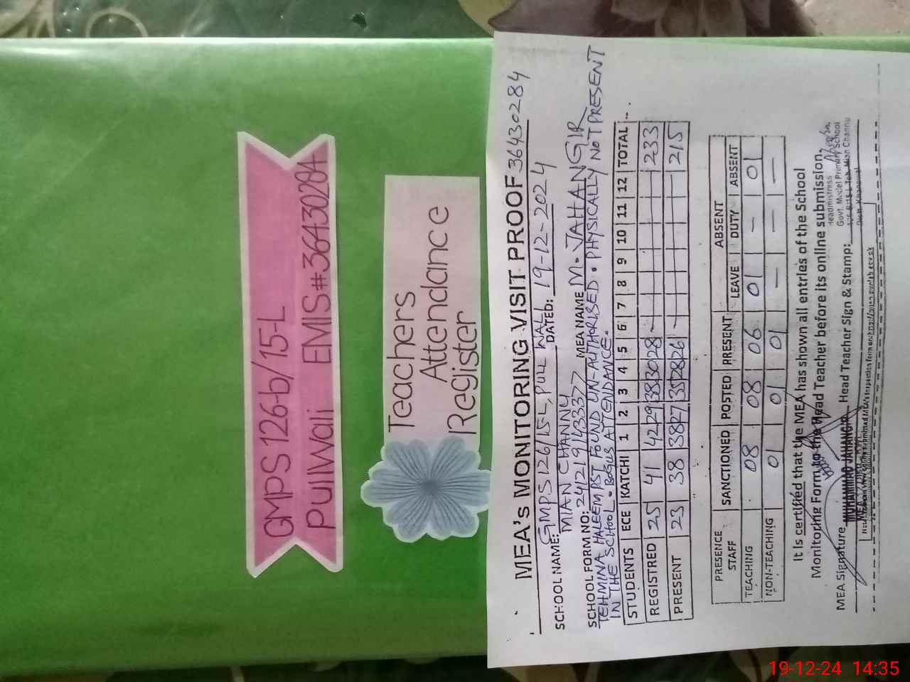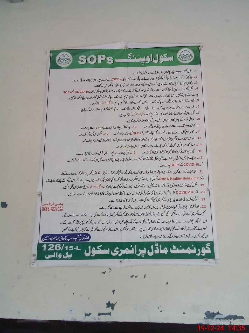 | EMIS Code: 36430284 | Name of School: GMPS 126/15-L PULL WALI, MIAN CHANNU | |||