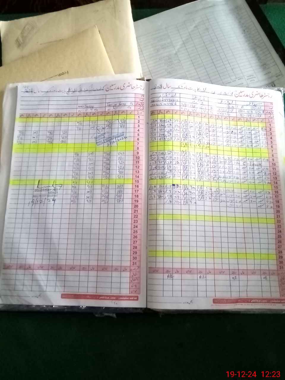 | CNIC | Full Name | Designation | R/C | Absence During Last Calender Month |