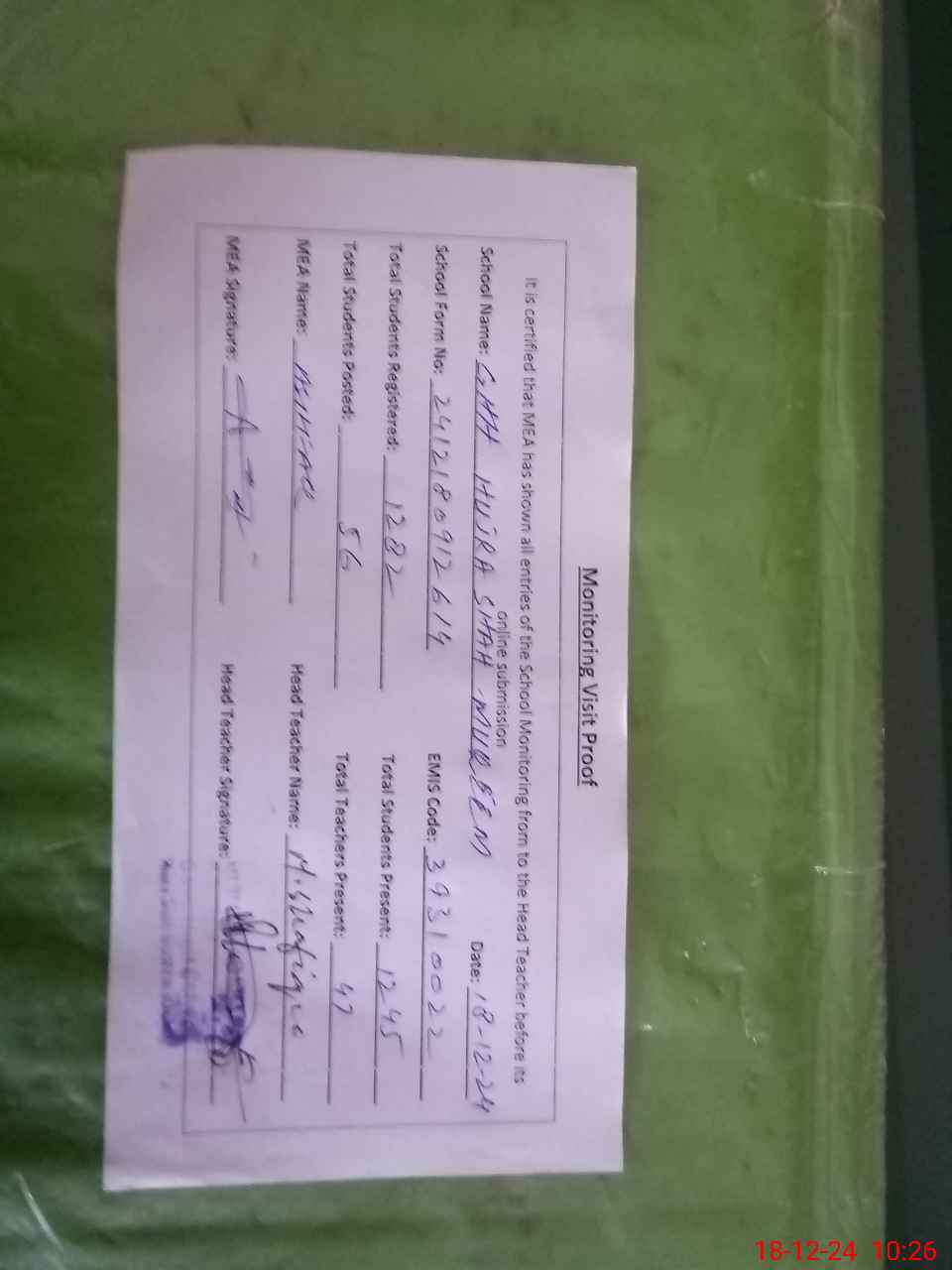 | Certified that this School was Inspected by the Undersigned MEA/DMO Today and the Information Stated Above is as Per Record. | |||||