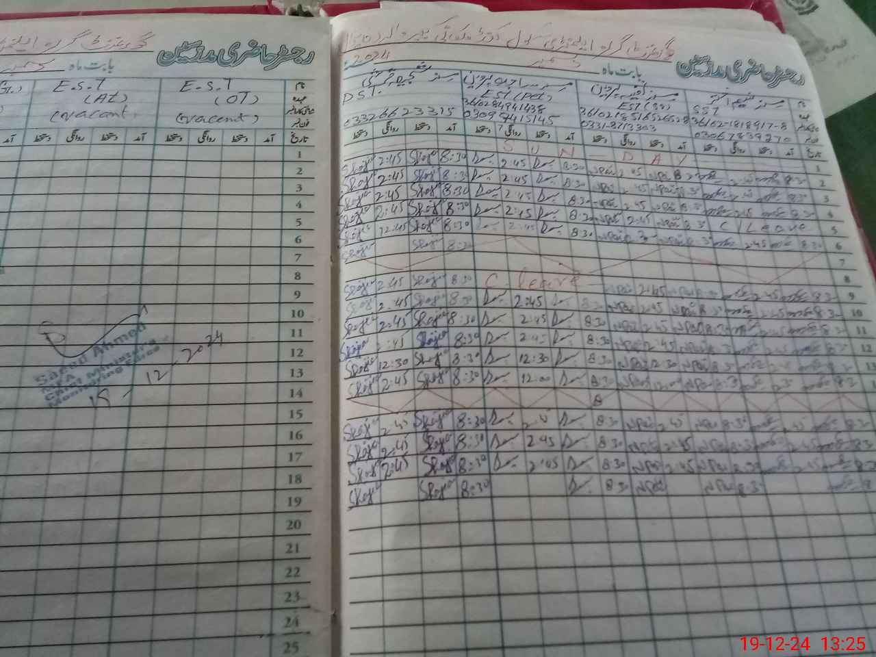 | CNIC | Full Name | Designation | R/C | Absence During Last Calender Month |