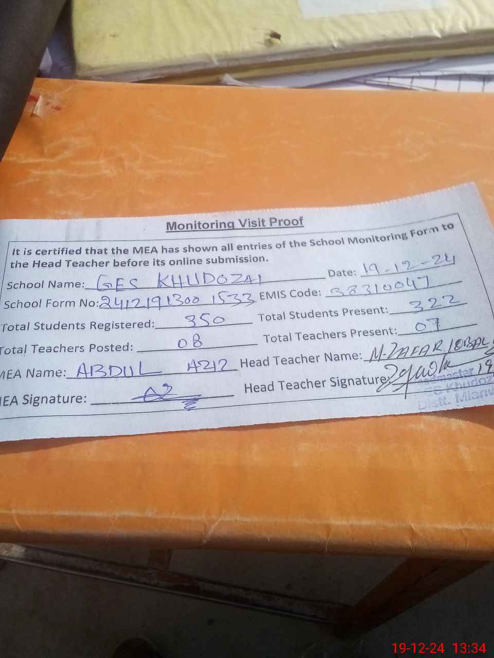 | EMIS Code: 38310047 | Name of School: GES KHUDOZAI | |||