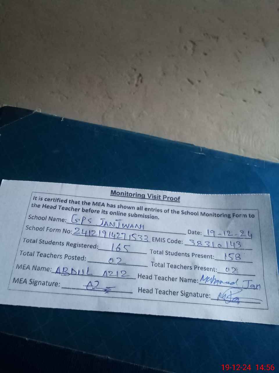 | EMIS Code: 38310143 | Name of School: GPS JANJWANI | |||