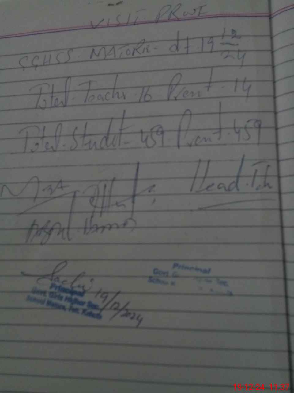 | Attendance Register | Head Teacher | MEA with School | Visit Proof |