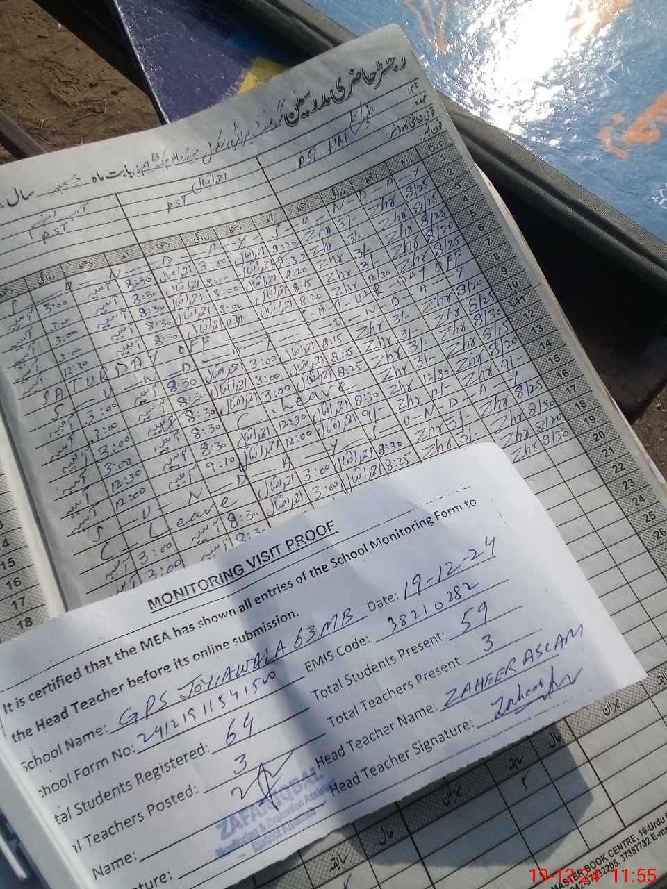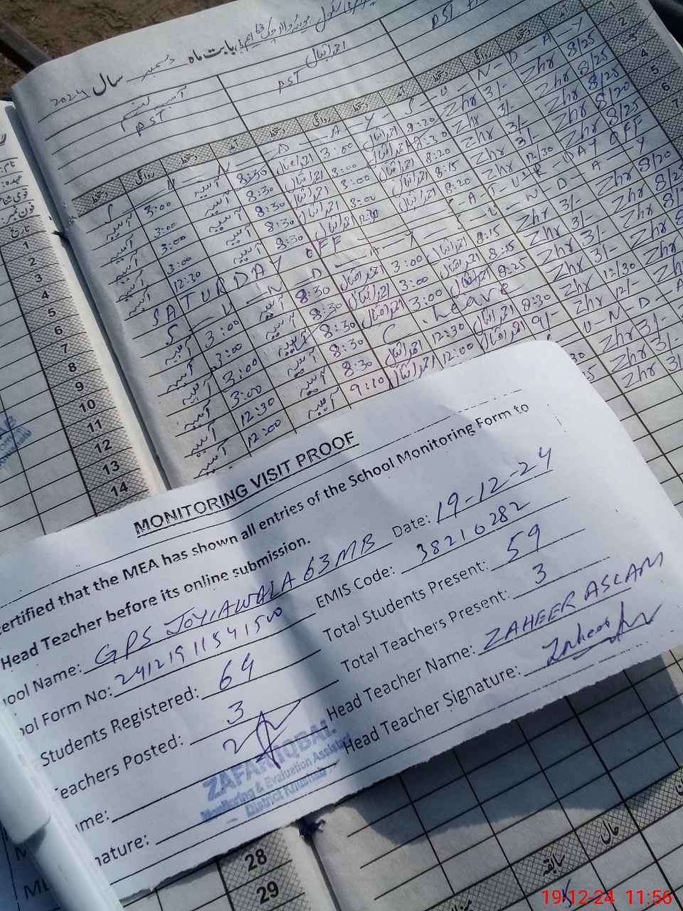 | Attendance Register | Head Teacher | MEA with School | Visit Proof |