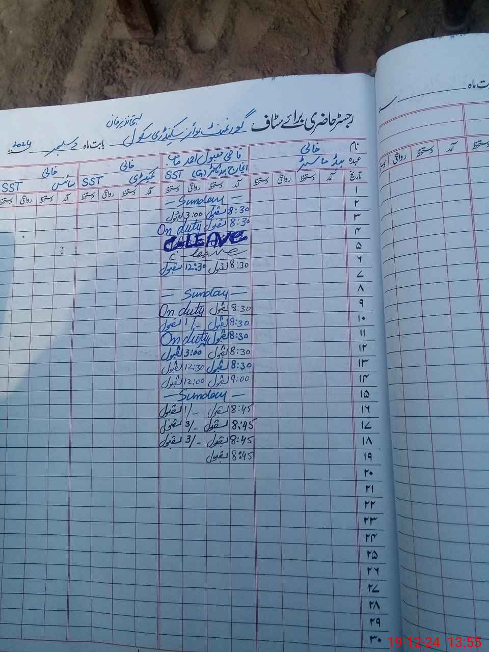 | Leave | Duty | Absent | Maternity | Medical | Ex- Pak |
