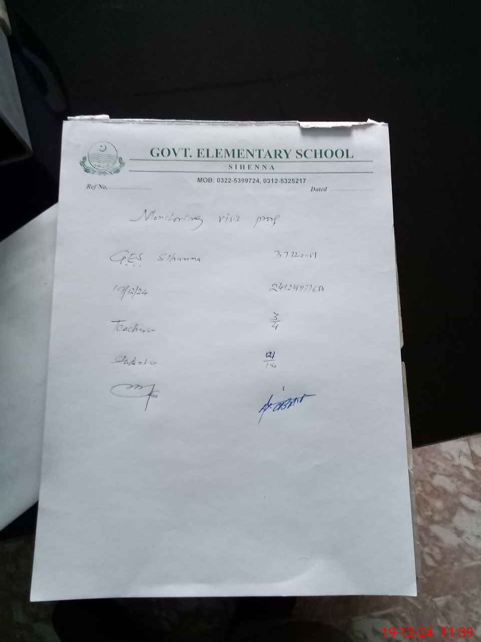 | Certified that this School was Inspected by the Undersigned MEA/DMO Today and the Information Stated Above is as Per Record. | |||||
