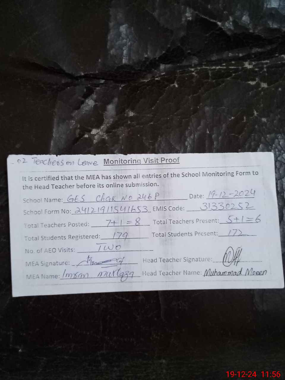 | EMIS Code: 31330252 | Name of School: GES CHAK 246/P | |||