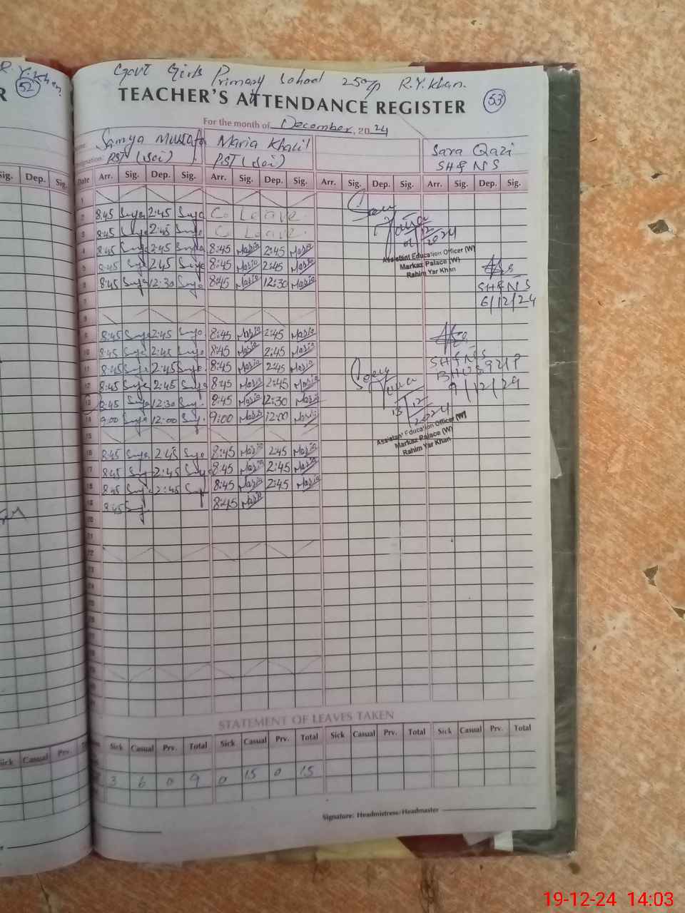 | District: RAHIMYAR KHAN | Tehsil: RAHIMYAR KHAN | Markaz: PALACE-FEMALE | Level: Primary | |
