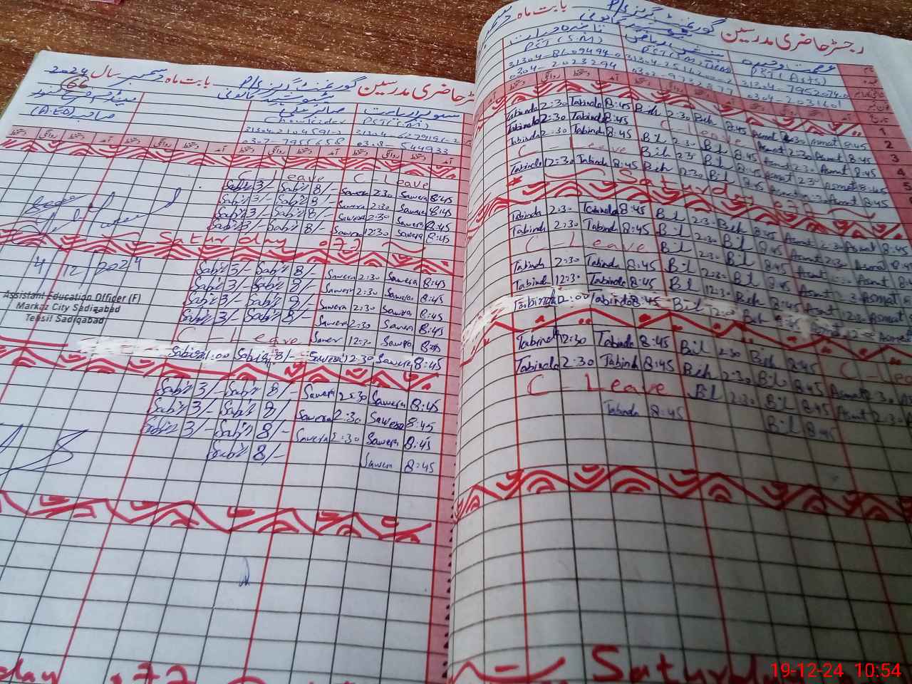 | CNIC | Full Name | Designation | R/C | Absence During Last Calender Month |