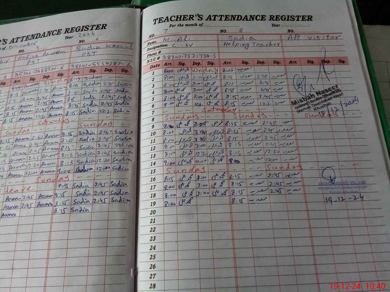 | Name: As**** Ha**** Designation: (School Headmaster's/Headmistress's) SST Phone/Cell Number: 03**** |