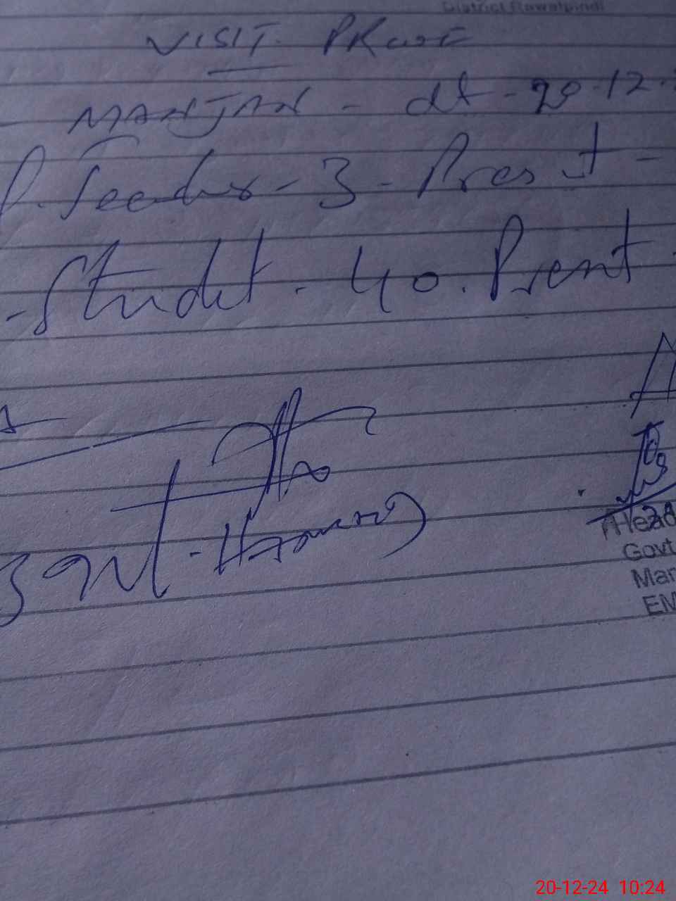 | Monitoring Date: 20-12-2024 | Start Time: 20-12-2024 10:15 AM | End Time: 20-12-2024 10:39 AM | Name of MEA: Ab**** Ha**** | |