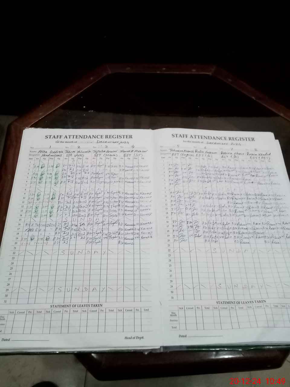| Leave | Duty | Absent | Maternity | Medical | Ex- Pak |